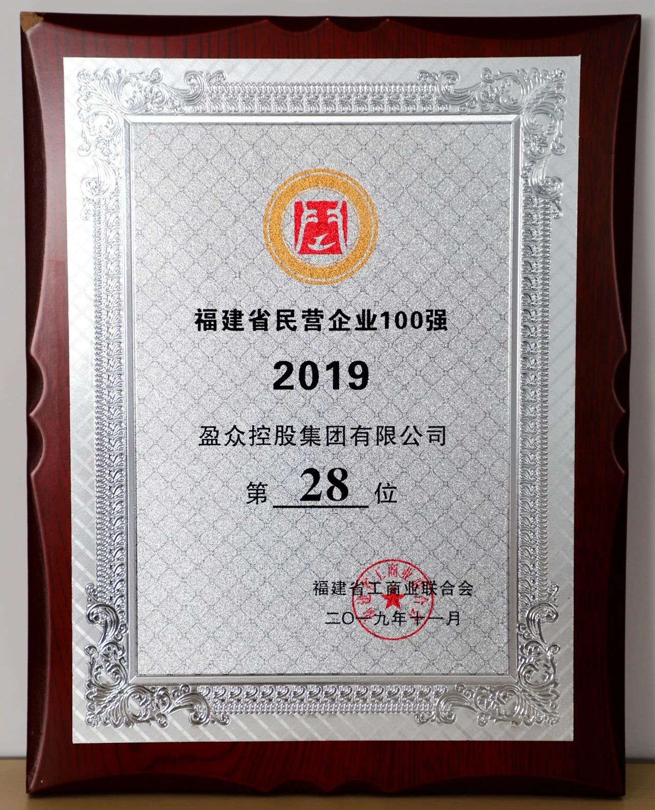 盈眾控股集團入選2019福建民營企業100強行列,在參評企業中排名第28位。作為福建省規模領先的汽車經銷商集團、大眾汽車集團全球經銷商戰略合作伙伴,盈眾始終堅守初心,專注汽車銷售服務行業,堅持以客戶為中心,不斷完善產業布局,創新服務體驗。未來,盈眾將懷揣“用科技和文化,讓人們的汽車生活更美好”的使命,緊抓機遇,積極創新變革,向“成為汽車銷售服務行業領軍者”的企業愿景加速邁進。