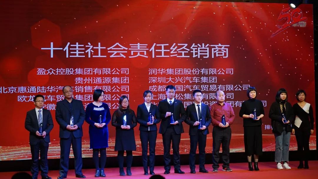 在頒獎(jiǎng)典禮上,盈眾控股集團(tuán)榮獲“十佳汽車營銷集團(tuán)”和“十佳社會(huì)責(zé)任經(jīng)銷商”稱號(hào)。