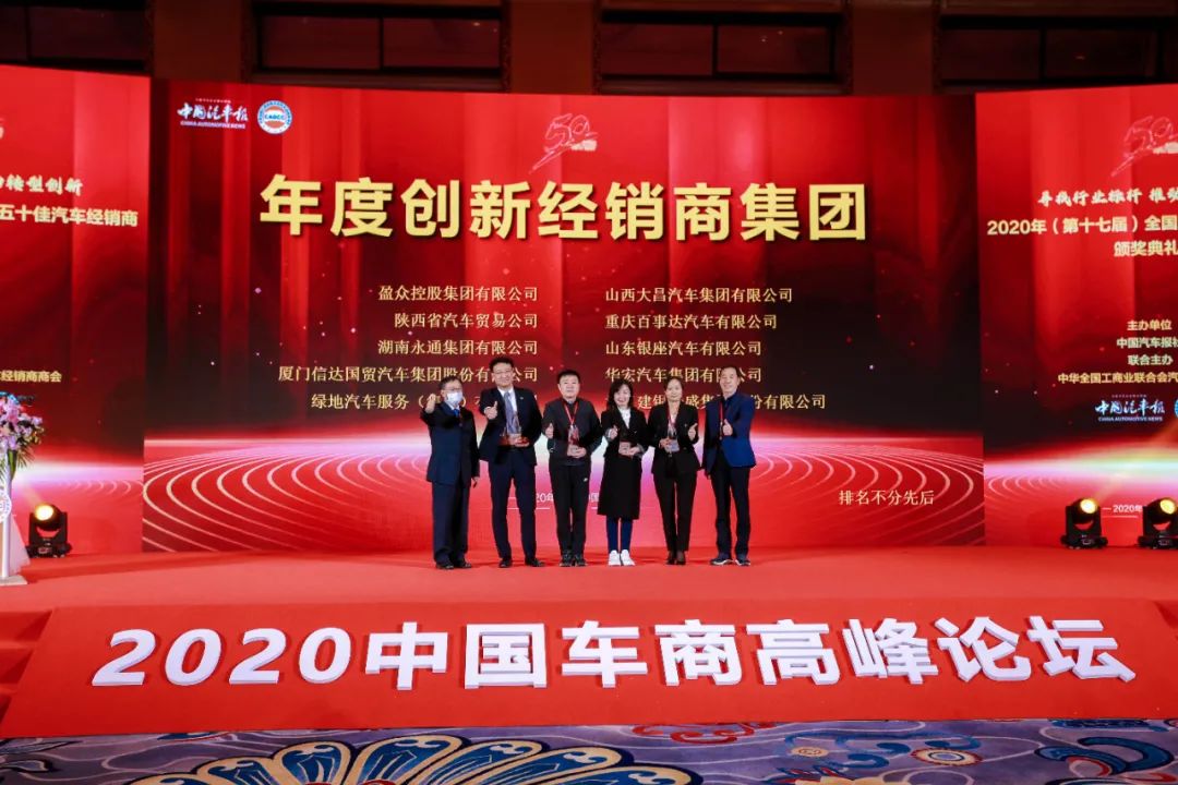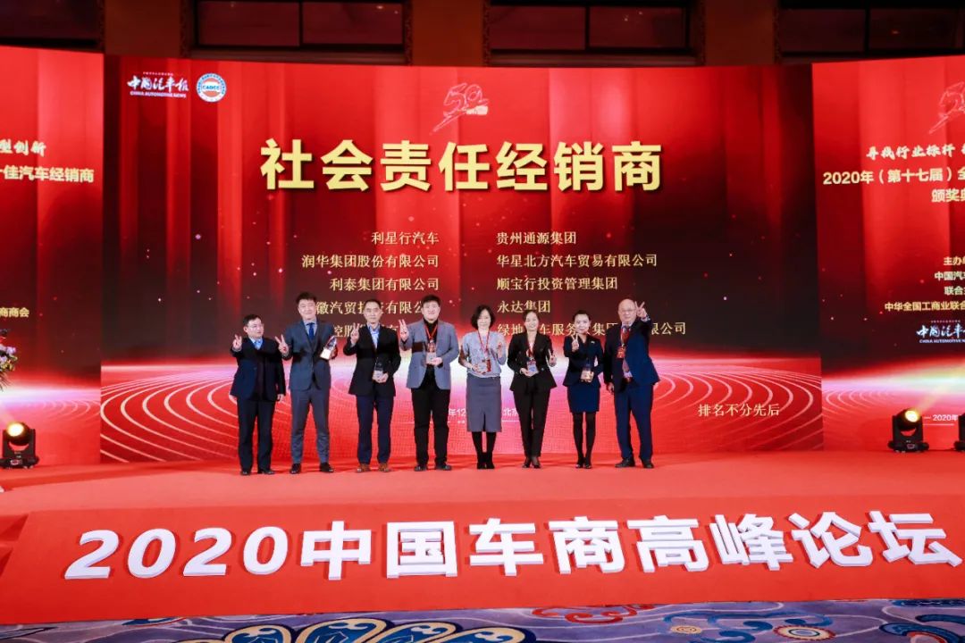 2020年12月27日,中國汽車報社與全國工商聯汽車經銷商商會共同主辦的“尋找行業標桿 推動轉型創新” 2020年(第十七屆)全國“五十佳汽車經銷商”頒獎活動在北京舉辦,同期還舉辦了以“把握新階段 共創新未來”為主題的2020中國車商高峰論壇。