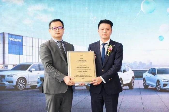 授牌儀式上,沃爾沃汽車大中華區(qū)銷售公司經(jīng)銷商網(wǎng)絡(luò)發(fā)展高級經(jīng)理萬維巍授予泉州富沃品牌經(jīng)銷商授權(quán)牌。