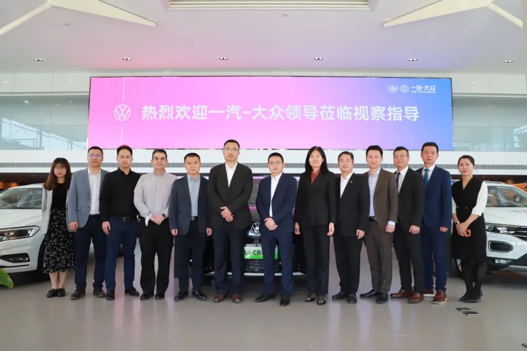 3月9日上午,一汽大眾銷售有限責任公司副總經理安立波、華南區銷售事業部總經理竇繪娟等領導蒞臨盈眾集團視察指導,盈眾控股集團副董事長孫聘仁,副總裁尤猛杰,一汽大眾品牌總監肖先明等陪同參觀與交流。