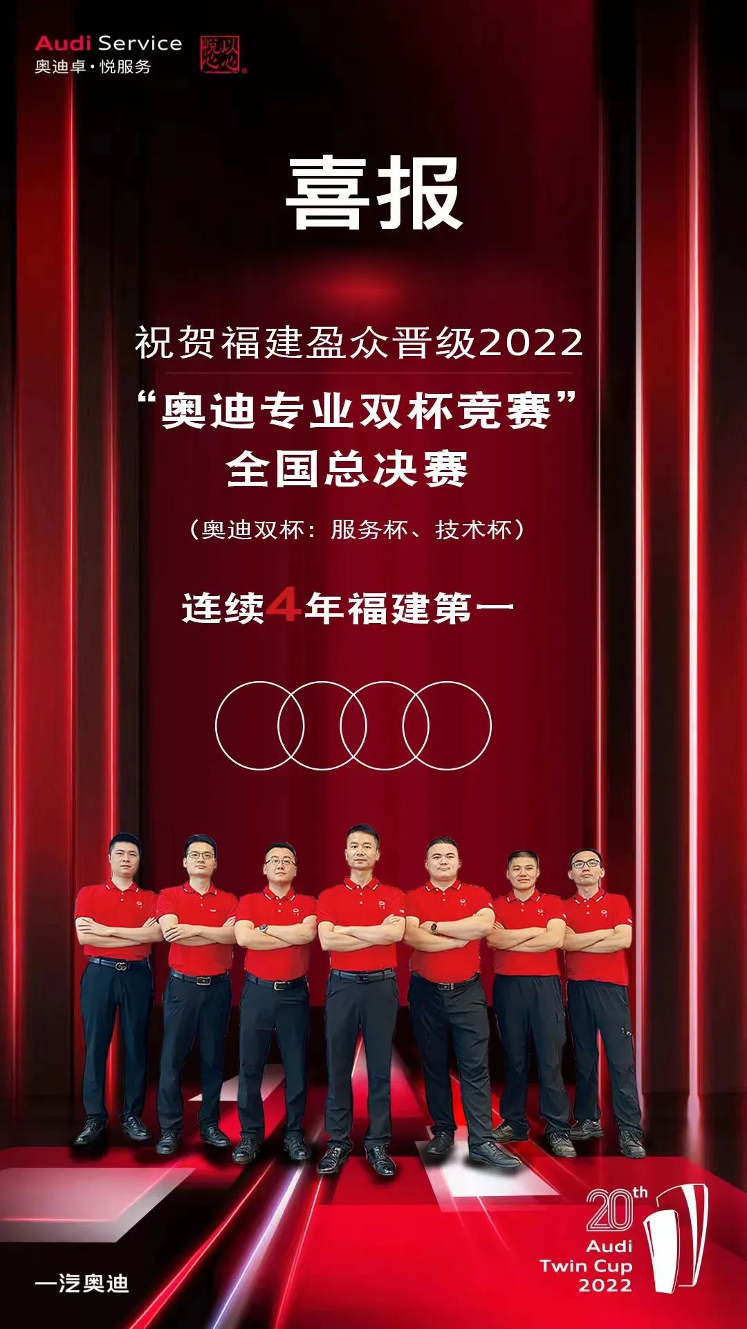11月7日,在2022奧迪專業(yè)雙杯競賽東南區(qū)決賽中,福建盈眾奧迪再次以全省第1名的成績,成為福建省唯一晉級全國總決賽的團隊。