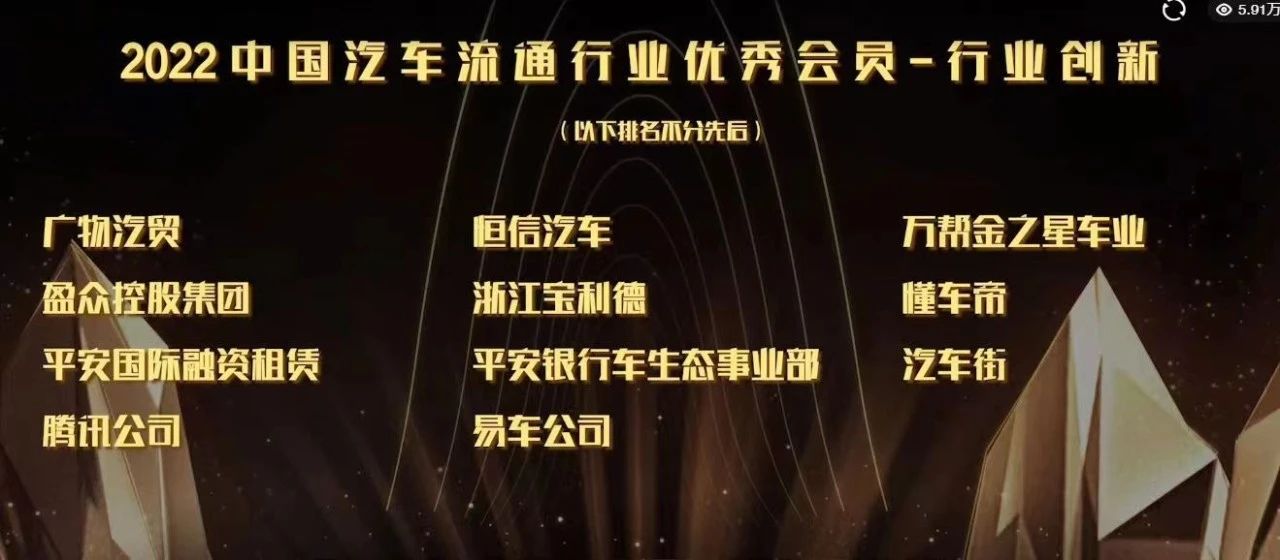大會(huì)上,盈眾控股集團(tuán)獲評(píng)2022中國(guó)汽車流通行業(yè)優(yōu)秀會(huì)員,獲得“行業(yè)創(chuàng)新獎(jiǎng)”和“企業(yè)管理獎(jiǎng)”,這是中國(guó)汽車流通協(xié)會(huì)對(duì)盈眾集團(tuán)企業(yè)經(jīng)營(yíng)管理和創(chuàng)新發(fā)展能力的高度認(rèn)可。