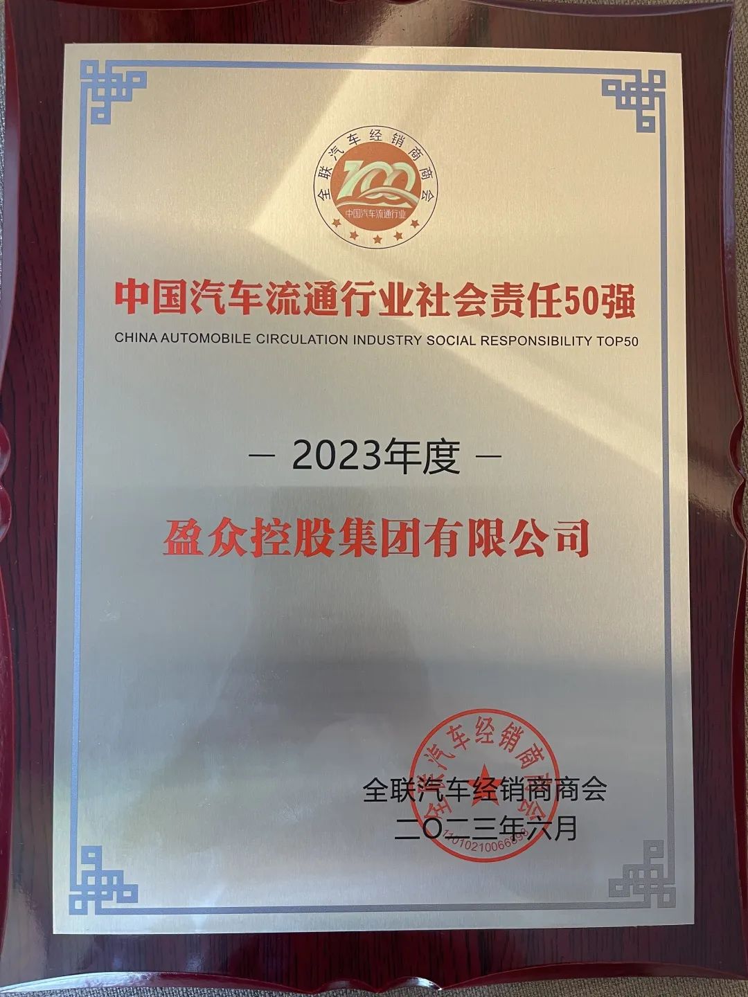 榮譽是動力,更是責任。盈眾將不忘初心,秉持“用科技和文化,讓人們的汽車生活更美好”的企業使命,以創新引領發展,以誠信鑄就品牌,專注汽車銷售服務行業,堅持以客戶為中心,為廣大客戶提供全方位的美好車生活服務!