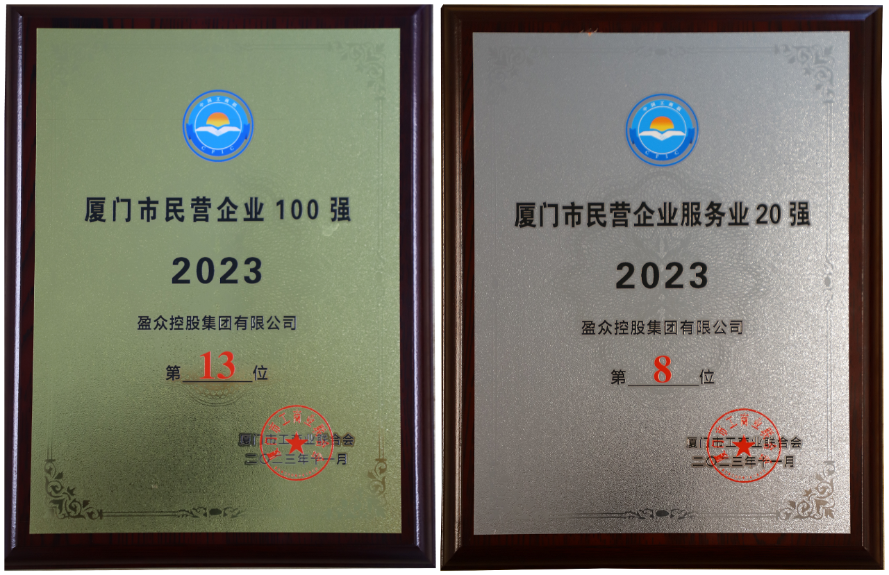 會上發布了2023廈門市民營企業100強榜單及“2023廈門市民營企業制造業20強”“2023廈門市民營企業服務業20強”和“2023廈門市民營企業科技創新20強”三個子榜單。盈眾控股集團憑借持續向好的發展態勢、穩健增長的經營業績、行業領先的服務水平,再次上榜,位列廈門市民營企業100強第13位,廈門市民營企業服務業20強第8位。