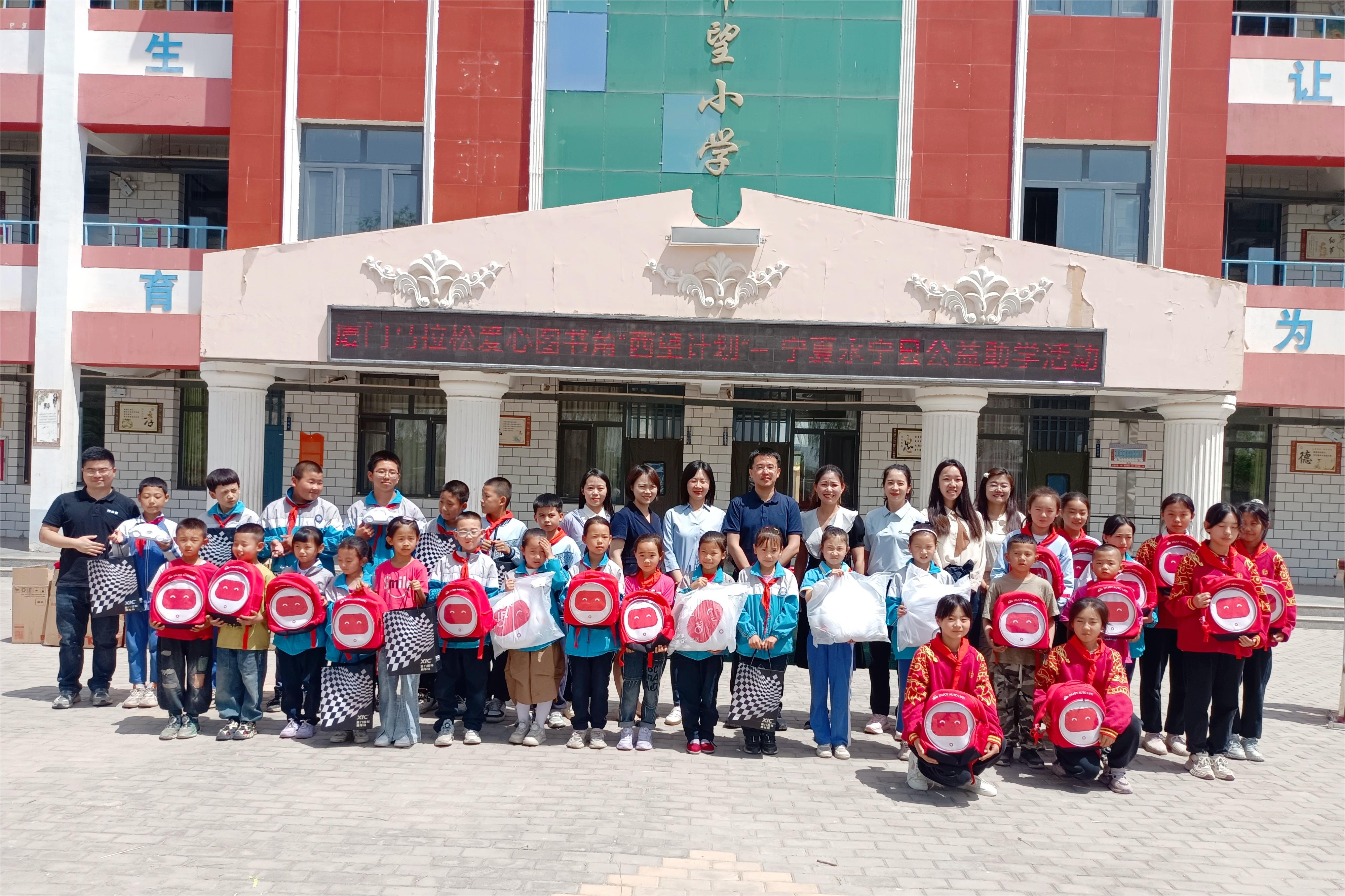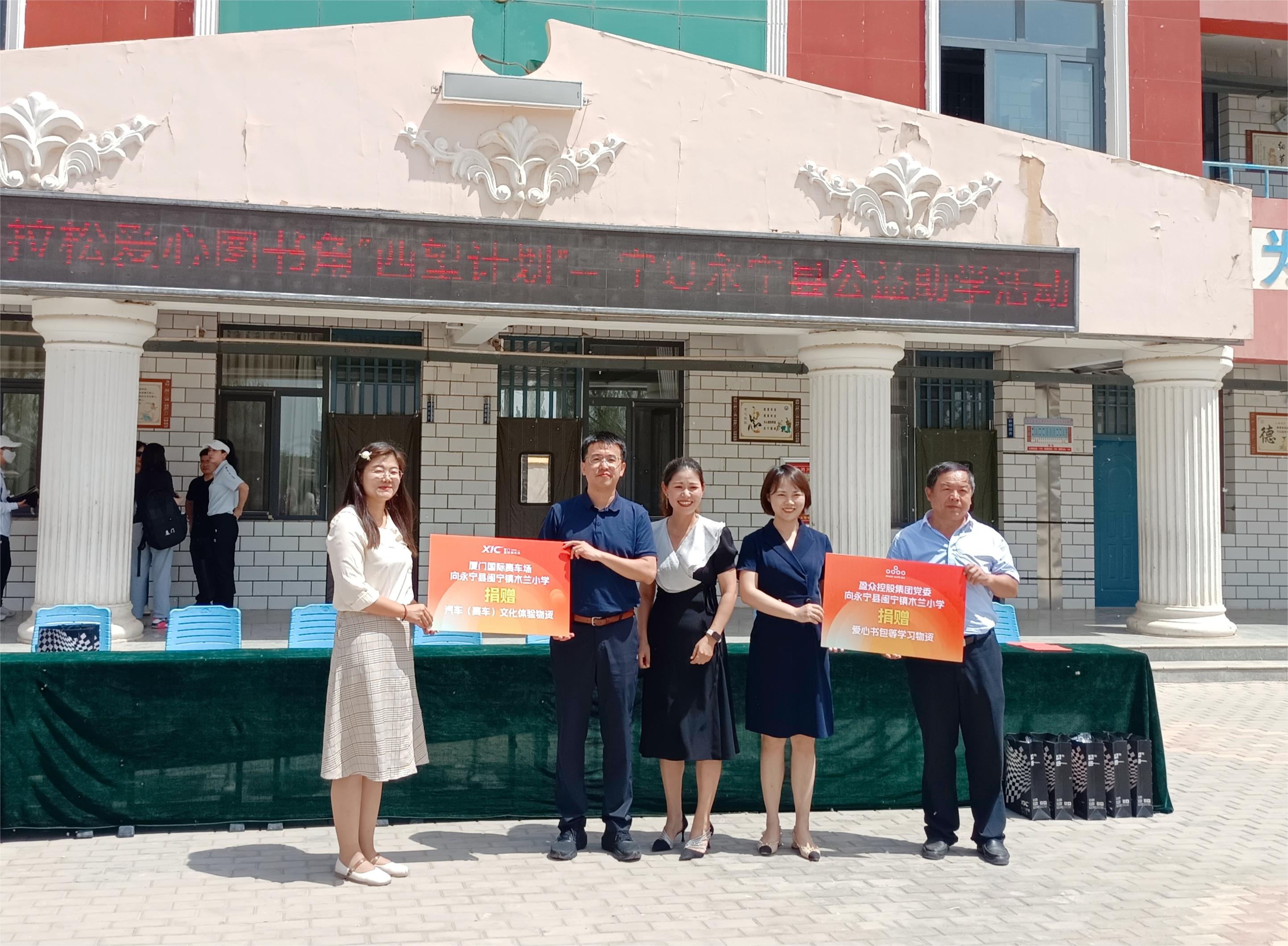 隨后一行人來到永寧縣閩寧鎮的木蘭小學、園藝小學,了解公益圖書角的使用情況,并開展捐贈助學活動。盈眾控股集團、廈門國際賽車場為永寧縣閩寧鎮木蘭小學捐贈了書包等學習用品、汽車及賽車文化體驗用品,并為孩子們帶去生動有趣的賽車文化公益課堂。