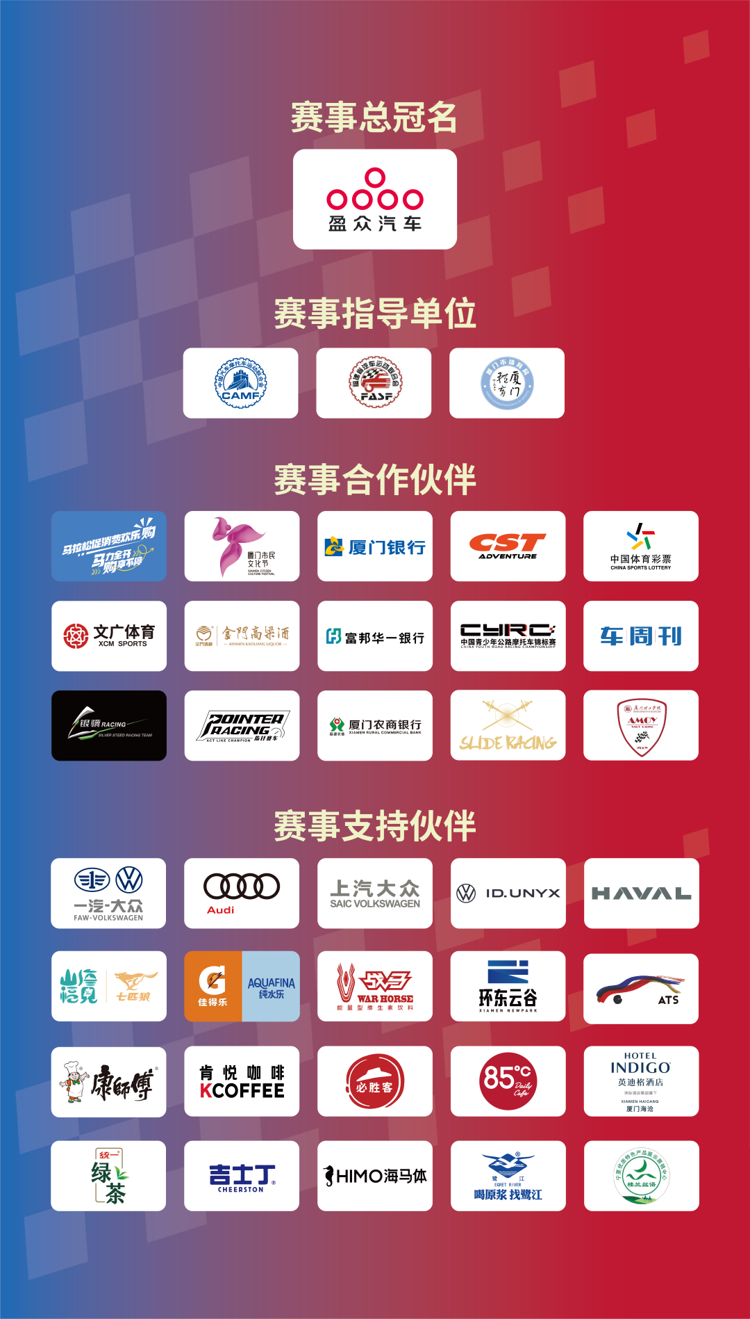 賽事由廈門市翔安區(qū)文化和旅游局、廈門市翔安區(qū)市場監(jiān)督管理局、廈門市翔安區(qū)婦女聯(lián)合會(huì)、廈門市翔安區(qū)內(nèi)厝鎮(zhèn)人民政府主辦;由中國汽車摩托車運(yùn)動(dòng)聯(lián)合會(huì)、福建省汽車運(yùn)動(dòng)聯(lián)合會(huì)、廈門市體育局、廈門市翔安區(qū)人民政府共同指導(dǎo);并得到了廈門文廣體育有限公司、廈門市翔安區(qū)文化館、廈門市翔安區(qū)青少年宮、指針賽車、銀驥賽車、中汽賽智(重慶)體育發(fā)展有限公司、廈門市翔安區(qū)吉他協(xié)會(huì)、廈門市翔安區(qū)音樂舞蹈協(xié)會(huì)、廈門市翔安區(qū)餐飲協(xié)會(huì)等單位和團(tuán)體的大力支持。